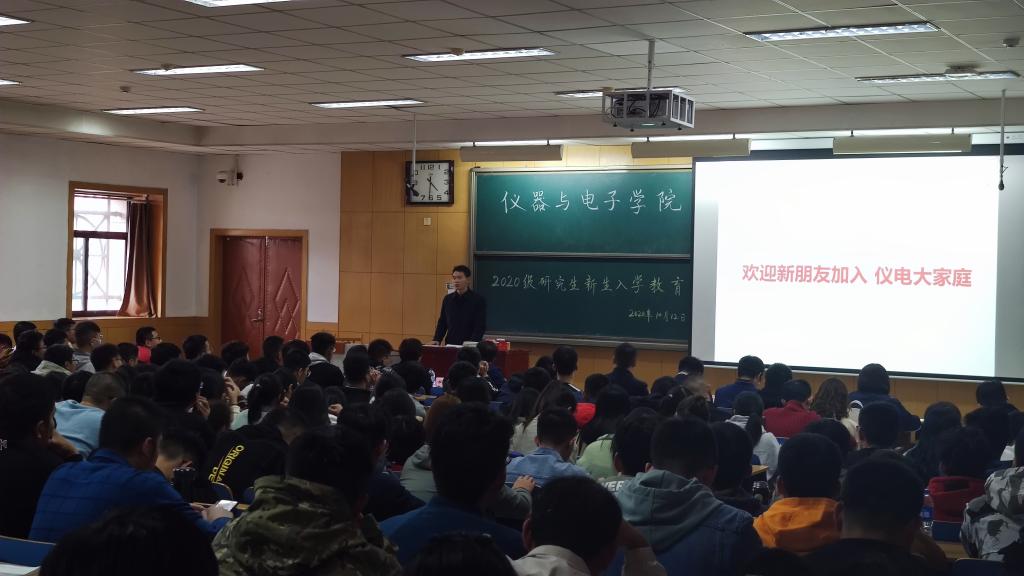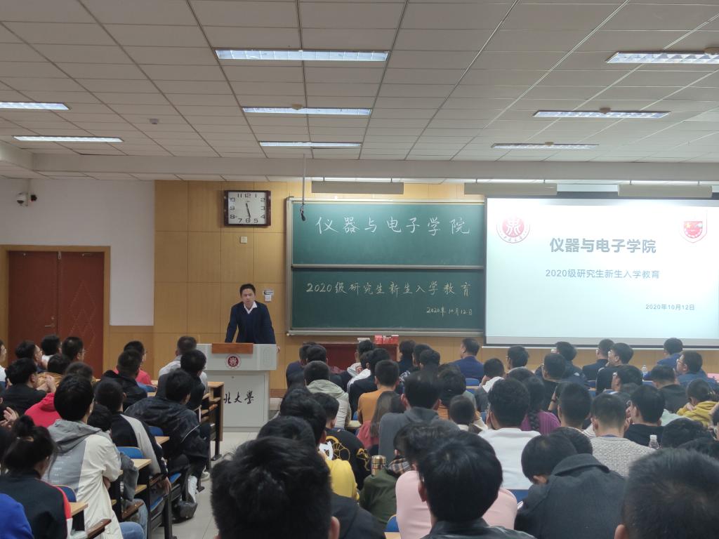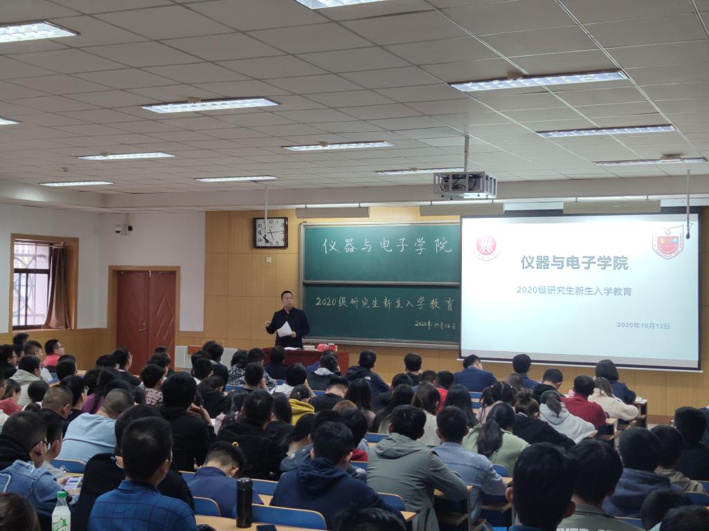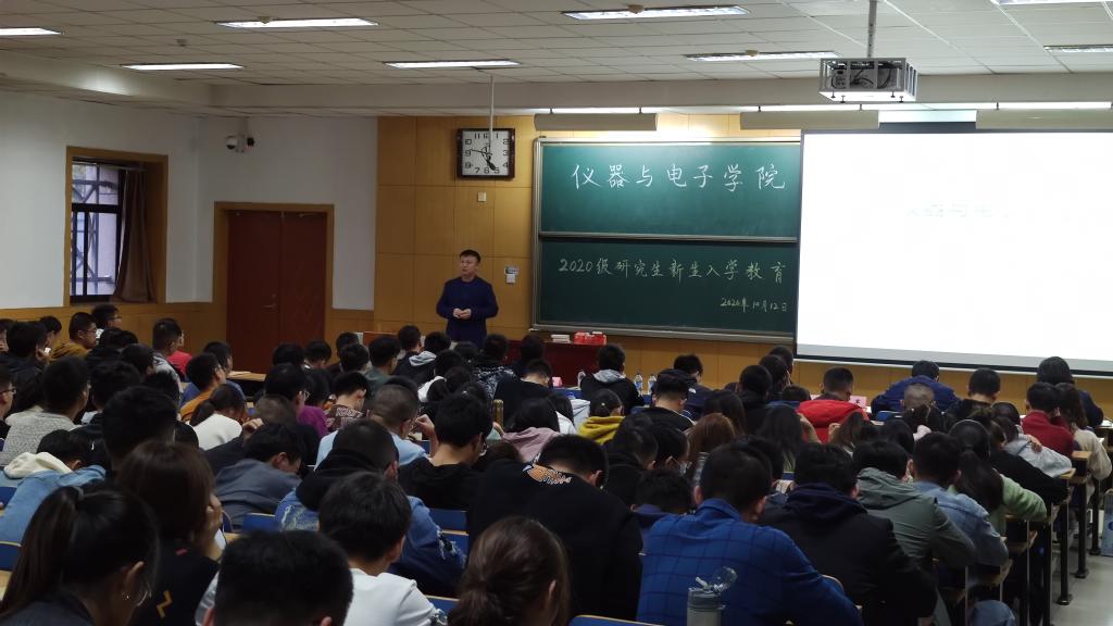 2020年10月12日,仪器与电子学院召开2020级研究生新生入学教育大会,学院党委书记郝晓剑、党委副书记高宏图、副院长李杰、唐军、梁庭出席,研究生辅导员、新生班主任及2020级全体研究生新生参加了此次入学教育大会。