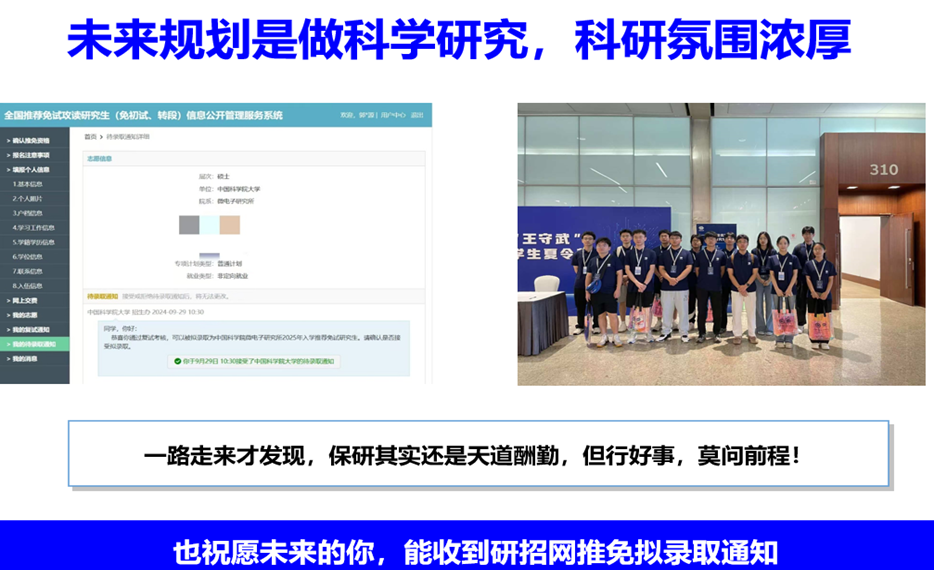 今年9月我顺利获得推免资格,并获得中国科学院大学、华中科技大学、北京航空航天大学等多所高校的offer。我想成为像袁隆平和钟南山爷爷那样胸怀祖国、服务人民的科学家,所以我选择继续深造,最终进入中国科学院微电子研究所重点实验室刘明院士团队,深耕新型存储器设计与集成技术,破解国产存储困境。