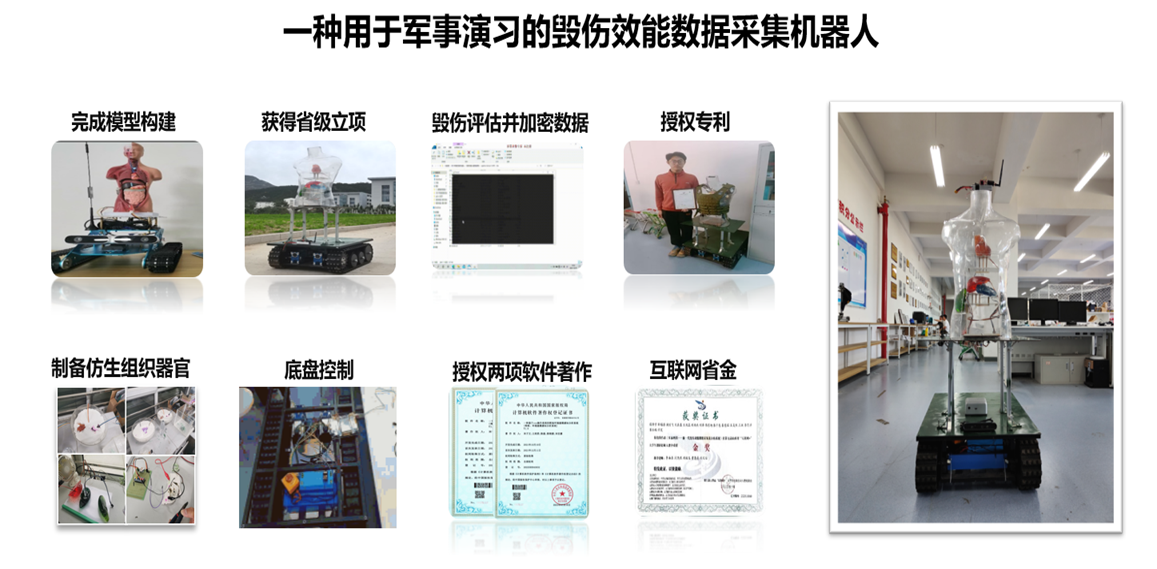 我想成为像钱学森先生那样追求卓越的爱国科学家,我在大一时一手组建起属于自己的科研团队,在一项省级大创项目中,我带领团队成功研发出毁伤测试机器人,并获得省级优秀结题,我作为第一发明人申请实用新型专利一项,软件著作两项。我很享受解决困难的过程和将想法成功落实的快乐,也因此真正热爱上了科研。