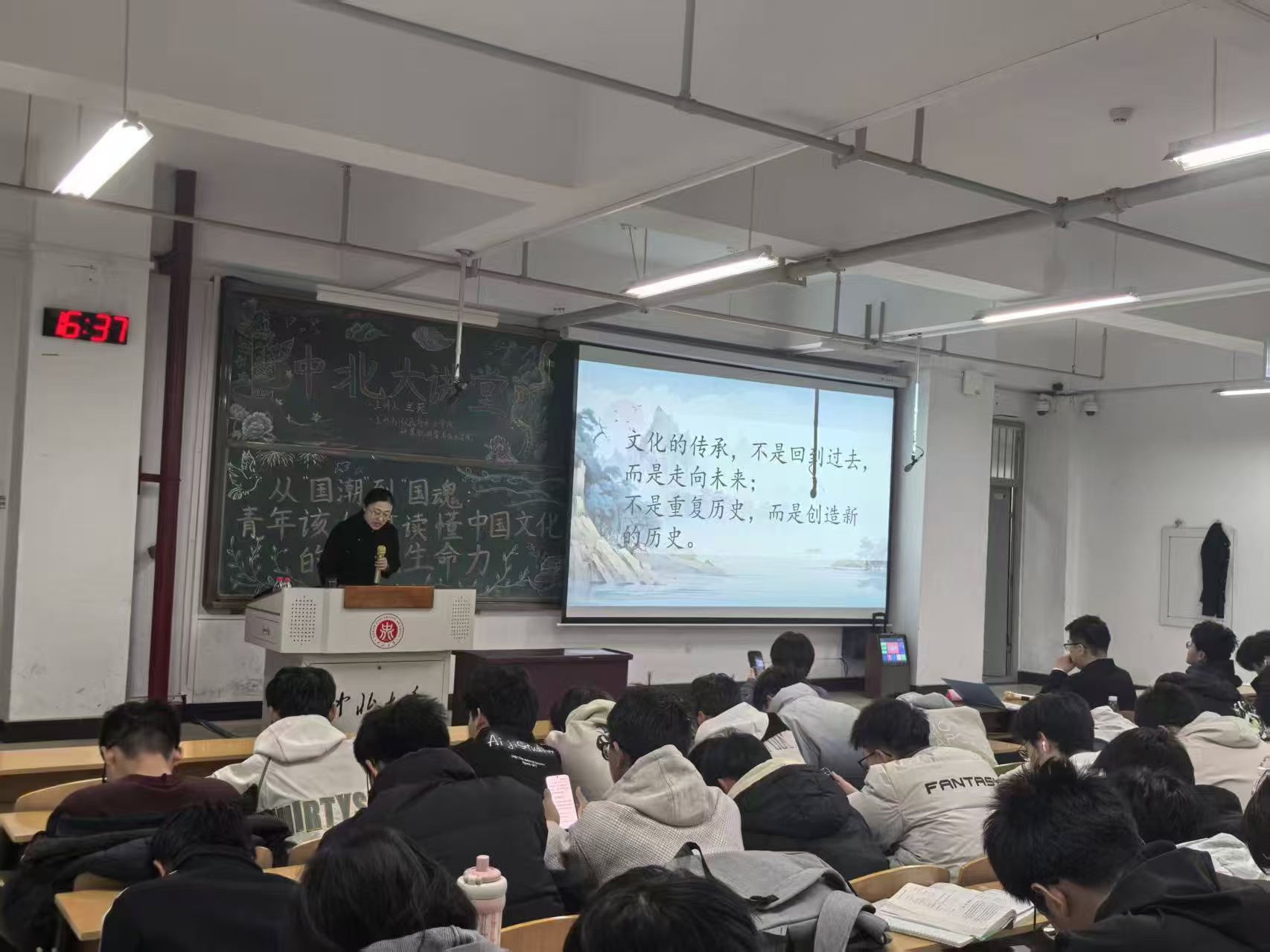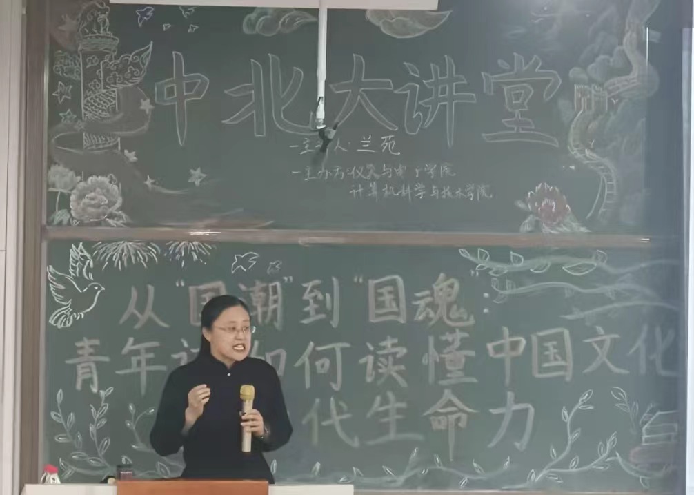 2025年11月21日,由中北大学学生工作部(研究生工作部、武装部)主办,仪器与电子学院、计算机科学与技术学院联合承办的 “中北大讲堂” 在 15106H 教室如期举行。本次活动特邀中共山西省委党校(山西行政学院)文史教研部兰苑教授,以《从“国潮”到“国魂”:青年该如何读懂中国文化的当代生命力》为题,为现场师生带来一场兼具思想深度与实践指导意义的文化分享。