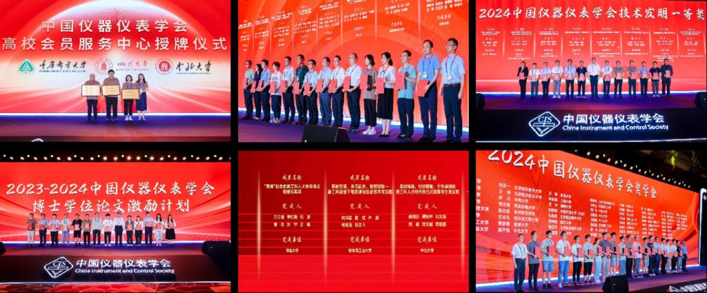 在中国仪器仪表学会副理事长、天津大学曾周末教授主持的授牌仪式上,中北大学仪器科学与技术学科团队获得中国仪器仪表学会高校会员服务中心、2024中国仪器仪表学会技术发明奖、2023-2024中国仪器仪表学会高等教育教学成果奖、2024中国仪器仪表奖学金等多项荣誉。靳昊宇、周子悦、周广宇、赵馨瑜、卫娜瑛五名同学荣获2024中国仪器仪表学会奖学金。大会邀请刘俊教授为荣获2023-2024中国仪器仪表学会博士论文激励计划的博士生颁发了获奖证书。