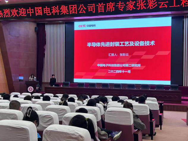 2024年11月14日15时,仪器与电子学院在图书馆五层学术报告厅举行本年度第3次华彩讲坛。本次讲坛邀请中国电科集团首席专家张彩云工程师,介绍半导体先进封装工艺及设备技术研究前沿,为半导体相关专业研究生提供了学术指引,吸引了广大相关专业研究生到场参加。