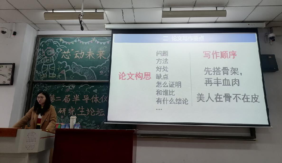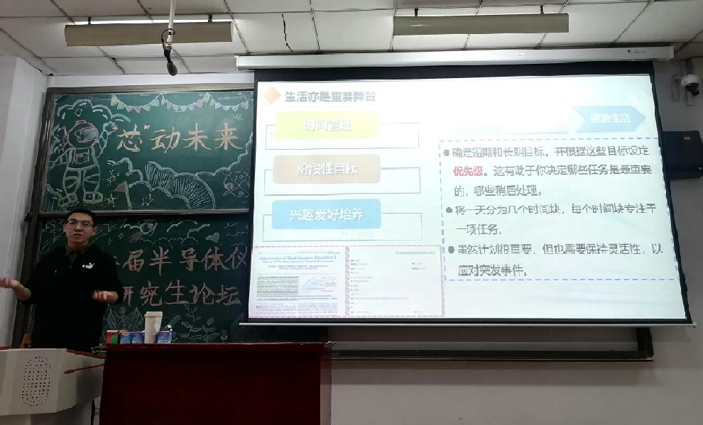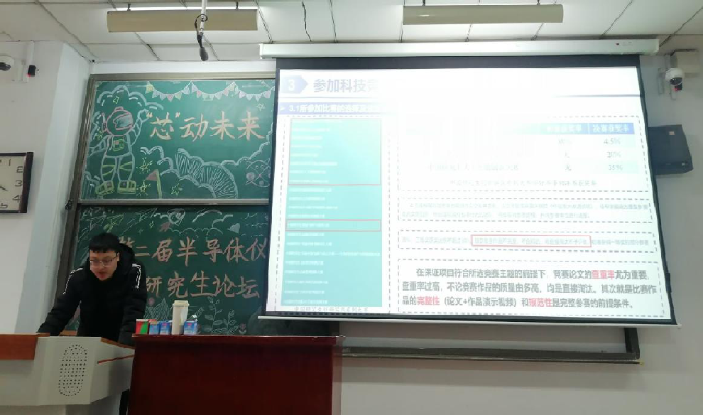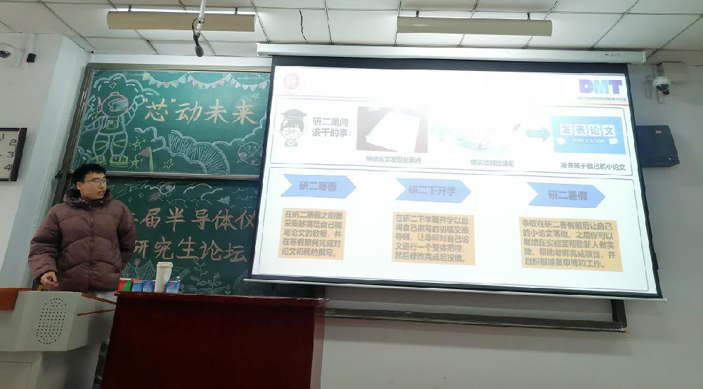 2024年11月19日15时,由仪器与电子学院、半导体与物理学院联合举办的第二届 “芯动未来,携手共创 ”研究生论坛在11205H教室成功举办。本次研究生论坛主讲人来自两个学院、四位优秀的2022级硕士在读研究生,他们分别是:仪器与电子学院仪器仪表工程专业陈浚杰、仪器与电子学院仪器科学与技术专业杜飞澎、半导体与物理学院仪器仪表工程专业付子晋、半导体与物理学院物理专业杨敏。四位主讲人通过分享自己在研究生阶段的学习规划、论文写作、科研、竞赛等方面的宝贵经验,与到场的研究生同学进行了全方面、多角度的交流,启迪智慧,碰撞出思维的火花!