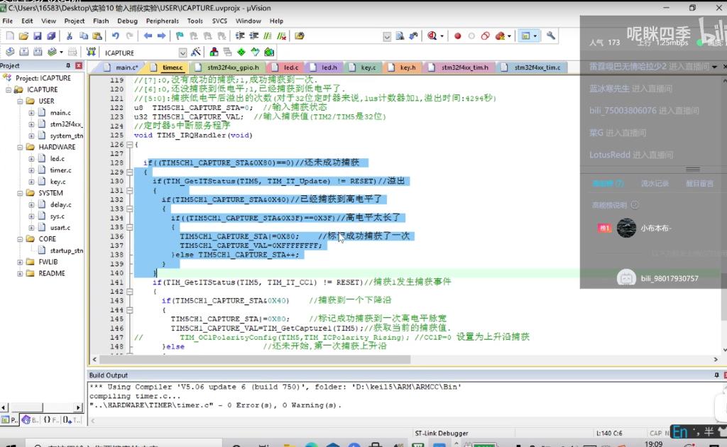 本次培训的主要内容是定时器关于PWM输出以及输入捕获内容,通过了解了一些定时器的基本知识与相关配置,了解了输入捕获的基本原理以及PWM波的本质,同时带领同学一步步的编写分析代码加深了同学们对相关知识的掌握。本次过程中,同学们积极配合,对相关问题及时提出质疑以及解答。本次直播采用哔哩哔哩平台,同时可以录屏上传,直播时能够和同学积极互动,课后同学也能通过录屏复习巩固,充分发挥了平台的优越性,为同学的学习提供了更加便利的条件。
