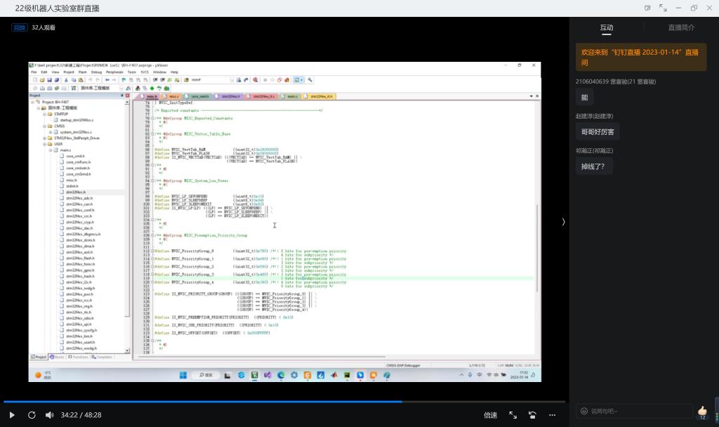 本次培训的主讲人为胡董宇,主要内容为对stm32中断的讲解。首先,胡董宇通过拓扑图的形式,并通过tm32技术文档,对中断的概念,中断的结构和中断优先级进行讲解,使得同学们能够初步了解中断。之后,胡董宇为大家讲解中断如何配置与注意事项,并着重讲解中断优先级的配置。最后,胡董宇通过示例程序为大家演示如何配置,使得同学们能够对中断有更深的了解。
