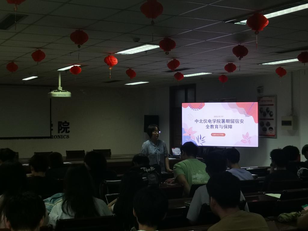 为切实保障暑期留宿学生人身财产安全,助力备赛学子安心投入学科竞赛与科创项目,7月7日19时,中北大学仪器与电子学院于主楼1115会议室召开暑期留宿安全教育大会。学院党委副书记魏春燕老师主讲,辅导员潘昊嵩参会,全体暑期留宿本科生到场学习。