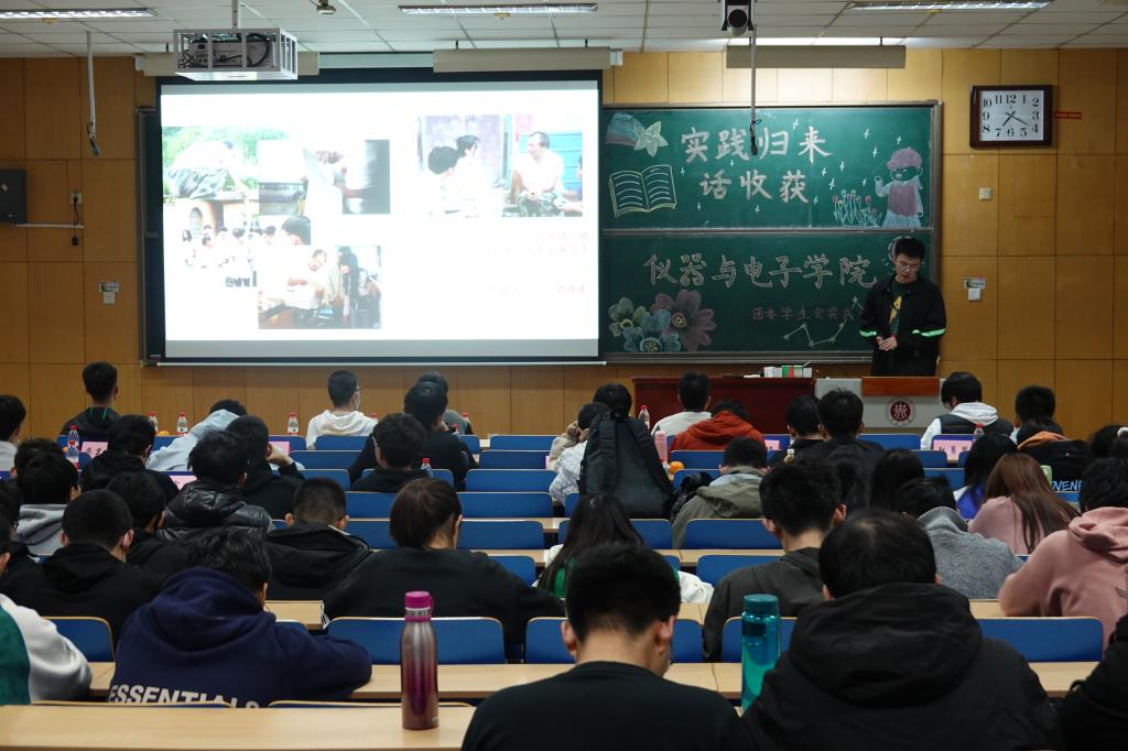 11月9日,仪器与电子学院在11209H教室召开“实践归来话收获”暑期社会实践活动故事分享会。此次分享会由学院暑期社会实践活动中的五位优秀代表苗云鸿、刘王泽、王嘉栋、谢晓峰、李智同学主讲,分享社会实践的内容和心得体会。