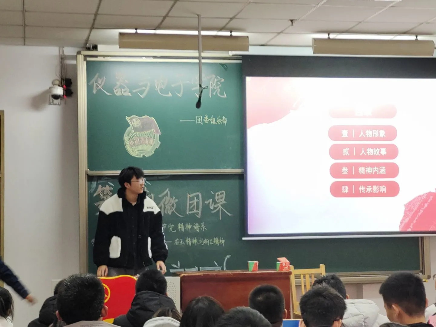 在2021年11月20日,仪器与电子学院团委组织部在11111H教室举办了第四期微团课。本次微团课的主题为“中国共产党的精神谱系”,内容包含了“右玉精神”与“刘胡兰精神”。此次进行团学分享的同学是由来自于仪器与电子学院的张子轩、王嘉和、王彩丽和王新健同学分别进行各自对该主题的认识和介绍。