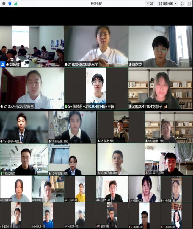 2022年4月28日上午8:00,我院2022年度转专业线上面试在教学主楼1207会议室举行,8:30转专业线上面试正式开始。本次面试评委由刘文怡院长、杜瑞平副书记、梁庭副院长、各系主任、学生科代表教师组成。历经近3个小时不间断进行,专家组成员对54名申请转专业同学的所学专业的知识掌握程度(学习成绩、专业排名、学分绩点、实际测评等)、综合素质(科技创新、个人能力、思想道德、心理健康、兴趣特长、如何处理人际间的关系及沟通等)、对我院相关专业的专业认知、个人发展规划等各个方面进行了全面的考查,我院转专业面试工作顺利完成。