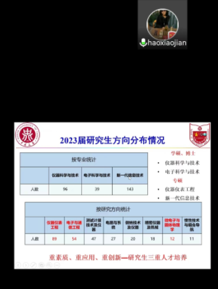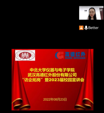 2022年8月23日下午16时,仪器与电子学院与武汉高德红外股份有限公司通过线上会议的方式举行“访企拓岗”的交流会,同时还进行了2023届的就业宣讲。学院党委书记郝晓剑、院长刘文怡、副院长李杰与武汉高德红外有限公司的人力资源、技术研发部门的领导进行了交流。参加交流宣讲会的还有2023届的研究生代表。会议由学院党委副书记杜瑞平和公司的人力负责人冷晓凯联合主持。