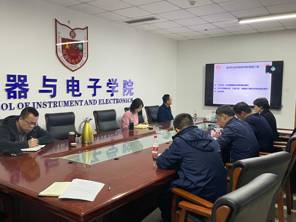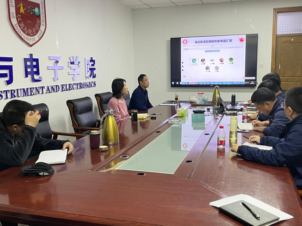 院党委书记郝晓剑对学院意识形态问题统筹部署,并提出具体要求,一是要严格落实《仪器与电子学院意识形态工作责任制》,切实把握住意识形态工作的主动权、领导权和执行力,筑牢底线思维、风险意识;二是要进一步健全落实责任清单管理机制、风险管控责任追究机制,提高对各分管领域舆论和安全管理工作的风险预判能力,做到“关口前置”;三是要抓好阵地建设,要加强学院宣传工作,切实将线上线下宣传阵地联动协同,真正汇集起日常工作与舆论宣传的强大力量;四是各科室要严格履行所负责网站、新媒体栏目内容管理责任,严格落实“三审三校”,统一审核标准,规范发布程序,落实《仪器与电子学院网站及新媒体平台信息发布管理办法(试行)》,常态化、长效化做好网络平台的管理和编发工作。