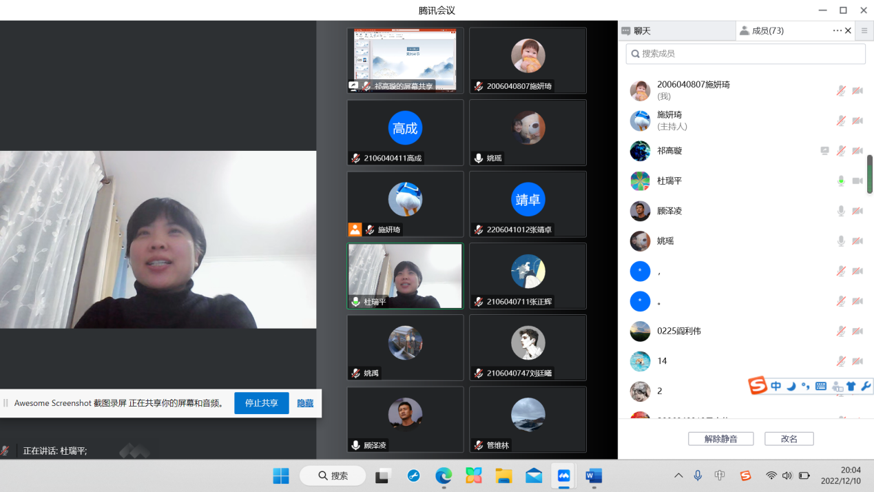 2022年12月10日,仪器与电子学院举办了“校友+”创新创业系列讲座第五讲。本次讲座特别邀请到了优秀校友顾泽凌分享他的学习经历和经验,并给出了学习与就业方面的相关建议。仪器与电子学院副书记杜瑞平,辅导员姚瑶出席了本次活动。