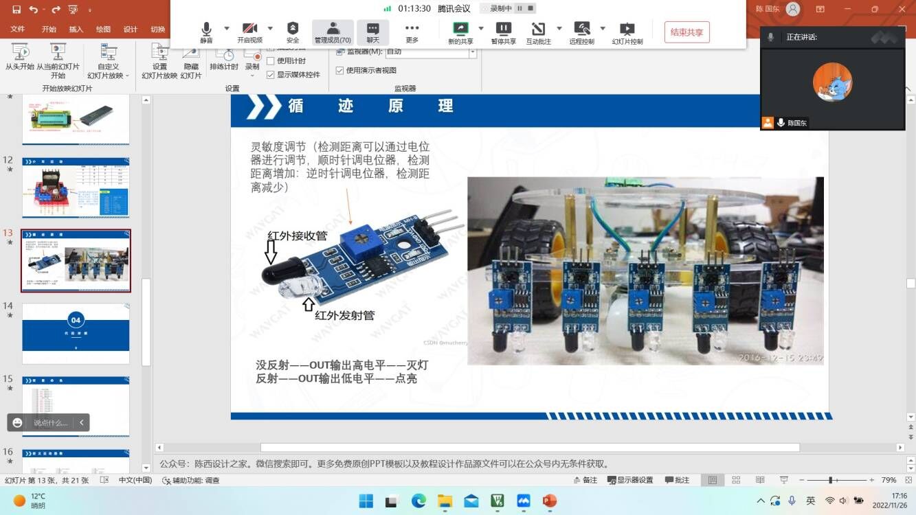 2022年11月26日下午17:00,IC设计与智能控制实验室开展第九次线上科普培训,培训的内容为基于51单片机的智能循迹小车相关内容。