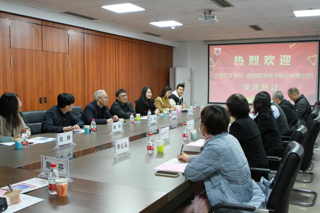 由黄刚教授率领的太原工业学院电子工程系的教师团队一行4人、龙斌副总经济师率领的成都凯天电子股份有限公司研发人事管理团队一行5人,参加了本次交流会。会议由学院党委书记郝晓剑主持,学院副书记杜瑞平、科研副院长谭秋林以及学术带头人和骨干教师围绕科研平台共建、校企产学研合作等深度校企科技合作形式研讨。