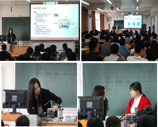《虚拟仪器设计》课程负责人葛双超老师首先介绍了简仪科技有限公司在我国自主知识产权的虚拟仪器研发领域的地位和作用,以及邀请企业教师授课对于本门课程及本专业人才培养的意义。然后杨佳添老师以讲授和实物演示相结合的方式为同学们讲解了虚拟仪器设计方法和多功能虚拟仪器实验箱使用方法。最后同学们针对理论和实践操作相关的问题向杨佳添老师及葛双超老师进行了提问和交流。