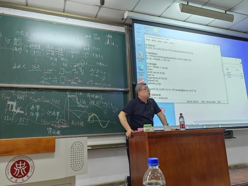 6月8日,在滤波模块正式开始之前,张晓明老师开展线下课程对滤波模块原理进行了简单介绍。首先从滤波器的设计入手,简单说明了滤波前后信号的组成,滤波前信号为被测量(有用量)和器件、环境噪声(无用量)组成,通过滤波器以达到提高信噪比的最终目的。