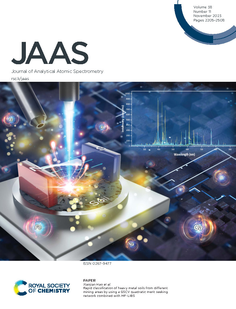 近日,在中北大学仪器与电子学院郝晓剑教授的指导下,2021级仪器科学与技术学科硕士研究生靳昊宇作为第一作者在英国皇家化学学会旗下的国际权威期刊《分析原子光谱学杂志》(Journal of Analytical Atomic Spectrometry,光谱学1区,IF=3.4)发表最新论文,并被选为2023年11月份期刊封面论文。该研究成果报道了一种基于GSCV二次寻优网络结合MF-LIBS的不同矿区重金属土壤快速分类方法,为土质组分快速检测和高精度定性分析提供了一种新的方案。该项工作是由靳昊宇同学在研二期间完成,其所在的郝晓剑教授“中仪迅辉”科技团队始终坚持面向国家重大战略需求、面向人民生命健康,致力于高精度LIBS光谱探测技术研究、动态光电测试理论与溯源性校准、极端环境测试与光电仪器、多维场重建与动态信息重构。