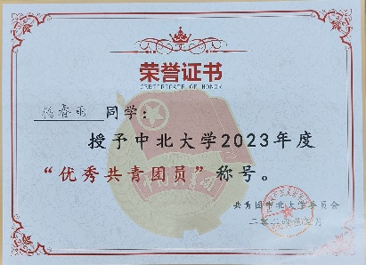 Ø 2024年,获中北大学2023年度“优秀共青团员称号”;