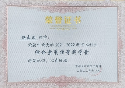 Ø 2022年,获中北大学2021-2022学年本科生综合素质特等奖学金;