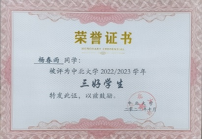 Ø 2023年,获中北大学2022/2023学年三好学生;