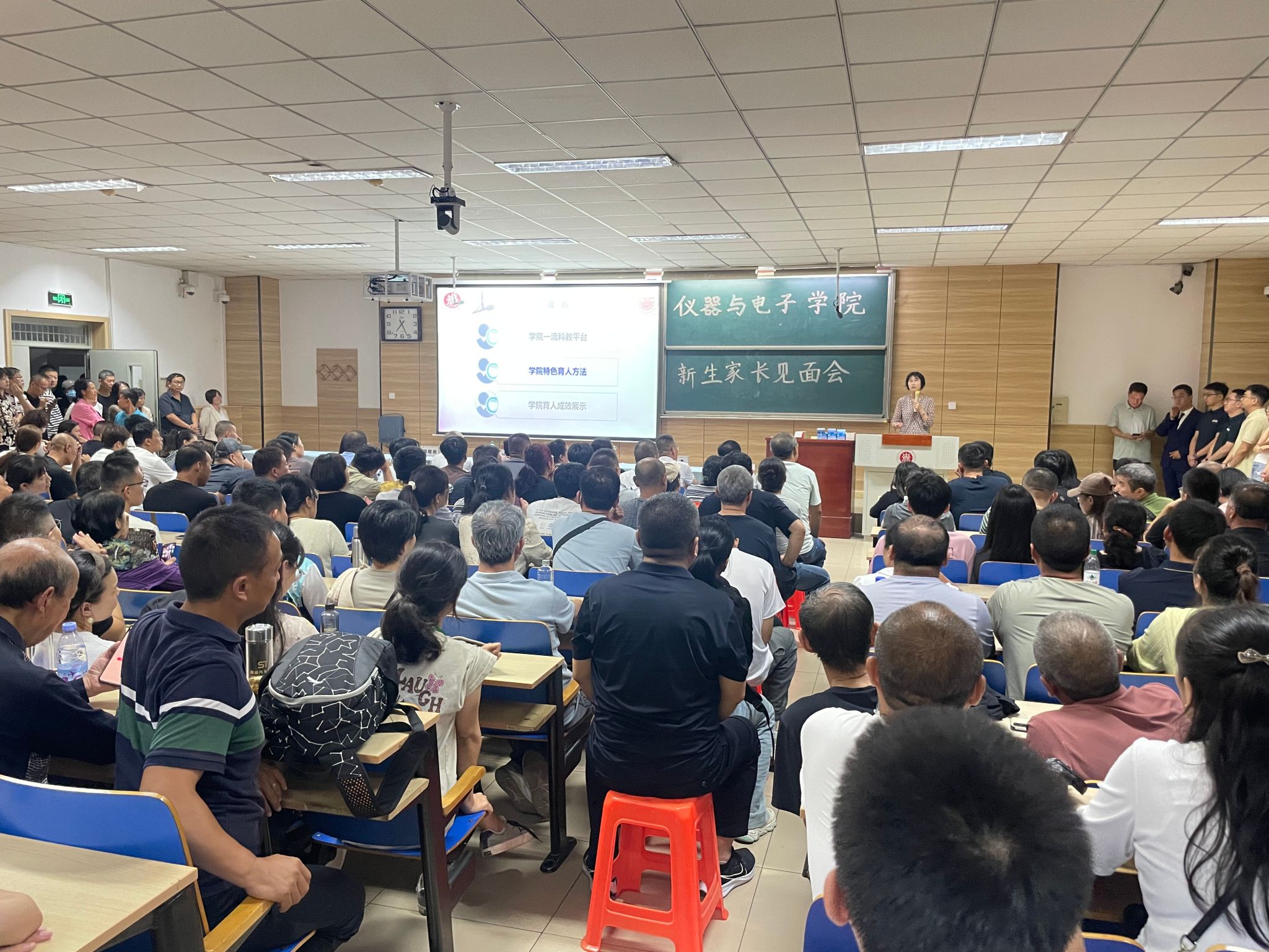郝晓剑书记详细介绍学院总体情况。她从学院历史沿革讲起,深入阐述学科建设的突出成就,如在仪器科学与技术、电子科学与技术等学科领域取得的多项国家级、省级科研项目突破;并重点解读了学院“厚基础、强实践、重创新”的人才培养体系,从课程设置、实验室资源、实习实训平台等方面,展现了学院为学生成长成才提供的广阔空间。还结合往届优秀学子的发展案例,鼓励新生家长与学院携手,引导孩子树立远大理想,在仪器与电子领域深耕细作。