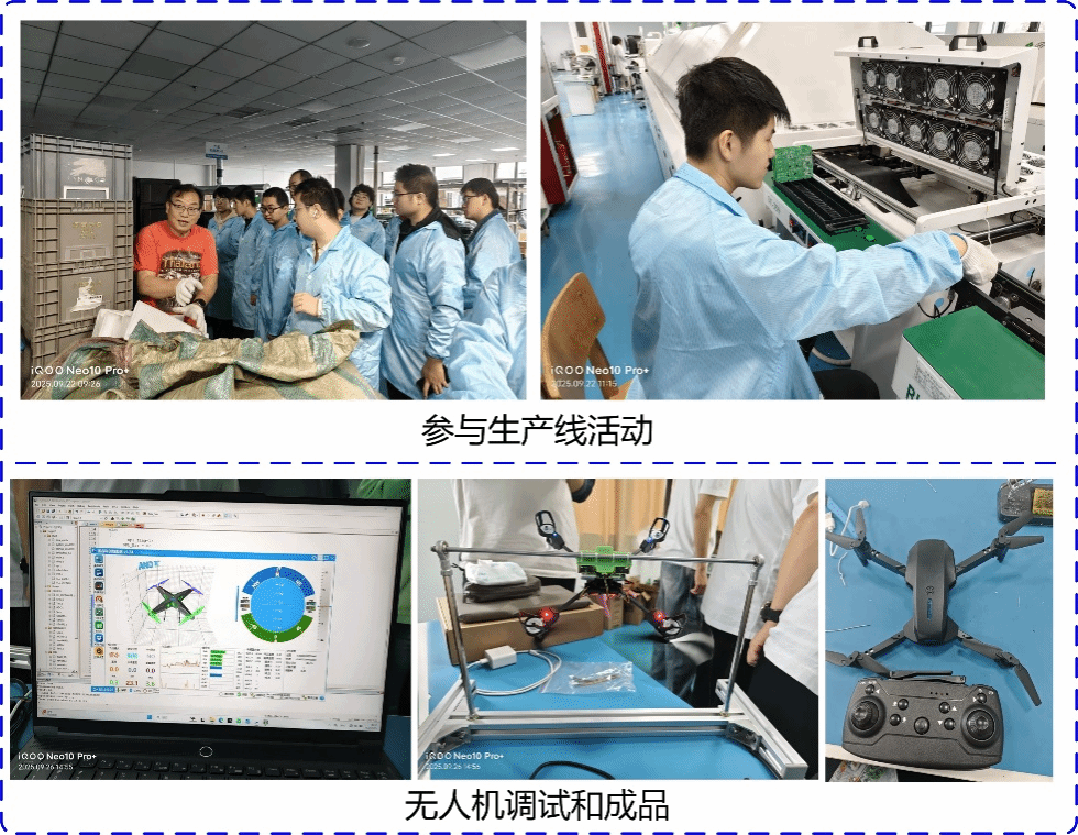 3. 实战与总结(9.24-9.30):9.24休息,9.25-26生产线实习;9.27-29完成无人机焊接、测试与组装;9.30试飞,掌握操控、航拍及APP操作。