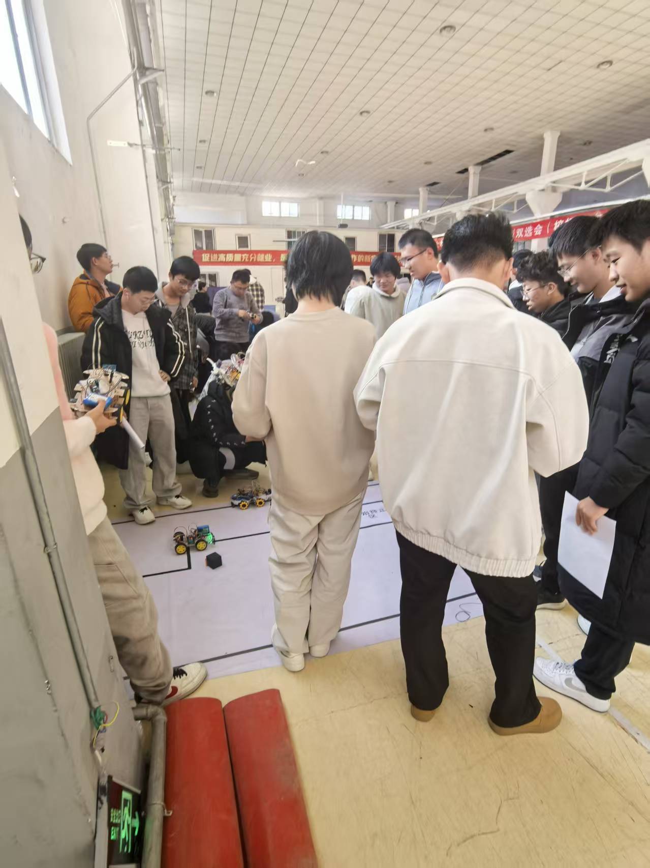 赛场上,各参赛选手的作品纷纷亮相,小车在指定赛道上灵活穿梭。随着裁判一声令下,小车精准识别路线,平稳穿越模拟火灾区域,部分作品搭载的风扇准时开启、蜂鸣器同步鸣笛,完美完成灭火警示动作;在物资抢救环节,小车夹爪精准抓取圆柱物资,稳稳承载其原路返回,不少选手的作品成功将物资完全放置于起始终止区,赢得现场阵阵掌声。调试阶段,选手们在创新精英研究院实验室反复调试,细心排查问题;比赛过程中,工作人员严格把控公平公正,赛后统一将参赛车辆标记以防作弊,确保赛事有序开展。