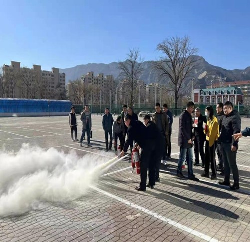 师生们参加了本次演练活动,演练过程中由学生代表讲解有关火灾现场的应急处置方案,灭火器的原理、基本操作方法及注意事项。