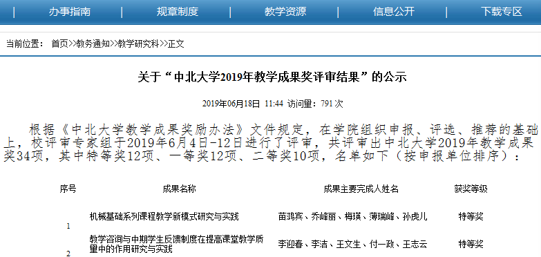 (2)中北大学2017校级教学成果二等奖(被推荐一等奖参评省级教学成果奖):基于“四新”实训板块的工科生的“研究生+”创新人才培养。