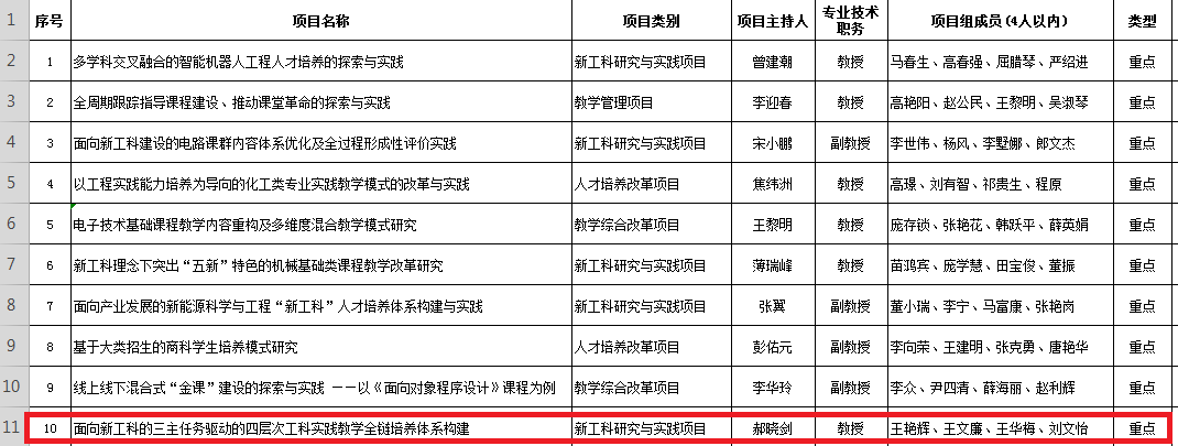 (4)面向新工科的三主任务驱动的四层次工科实践教学全链培养体系构建,校级重点。