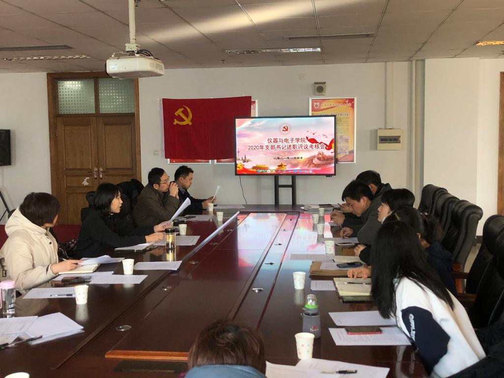 为深入学习习近平新时代中国特色社会主义思想和党的十九大精神,切实履行管党治党政治责任,推进全面从严治党向基层延伸,提升基层党建工作水平,1月4日下午,仪器与电子学院在主楼1115会议室召开2020年度党支部书记抓党建述职评议考核会议。学院党委书记郝晓剑主持会议,学院党委副书记杜瑞平、副院长刘文怡、副院长唐军等党委委员和各支部书记、委员参加会议。