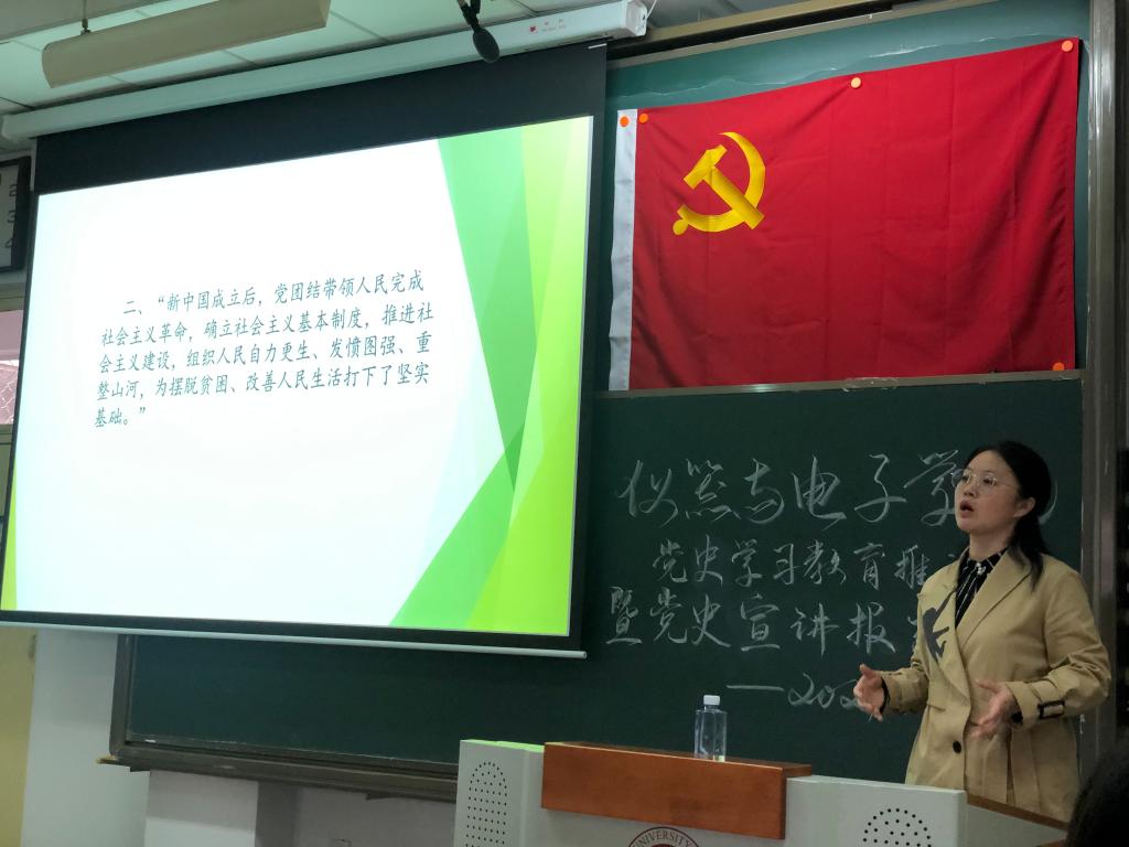 为扎实推进党史学习教育工作,进一步营造浓厚党史学习教育氛围,确保党史学习教育工作落到实处,4月1日,仪器与电子学院在11506H教室召开了党史学习教育工作推进会,同时邀请校党史宣讲团成员张慧玲老师做第二场党史学习专题报告,学院党员领导干部,100余名师生党员参加了会议。