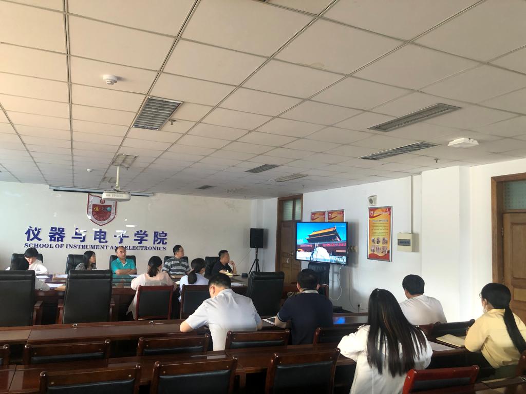 6月4日下午,仪器与电子学院党委在主楼1115会议室召开了党委中心组(扩大)理论学习会。本次会议就《习近平新时代中国特色社会主义思想学习问答》中“五位一体”相关内容和《用好红色资源、传承好红色基因,把红色江山世世代代传下去》一文进行了集中学习和交流;就党在十八大以来的历史、党的十九届五中全会精神开展第二场专题研讨。学院党委书记郝晓剑主持会议,学院党委委员、党员领导干部、各支部书记和各行政科室工作人员参加会议。