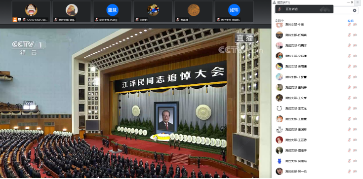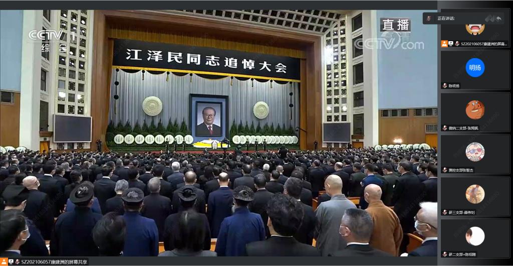 12月6日上午10时,党中央、全国人大常委会、国务院、全国政协、中央军委在北京人民大会堂隆重举行江泽民同志追悼大会。仪器与电子学院全体师生党员线上集中观看直播、沉痛哀悼江泽民同志,追悼大会默哀时全体就地就近默哀3分钟。