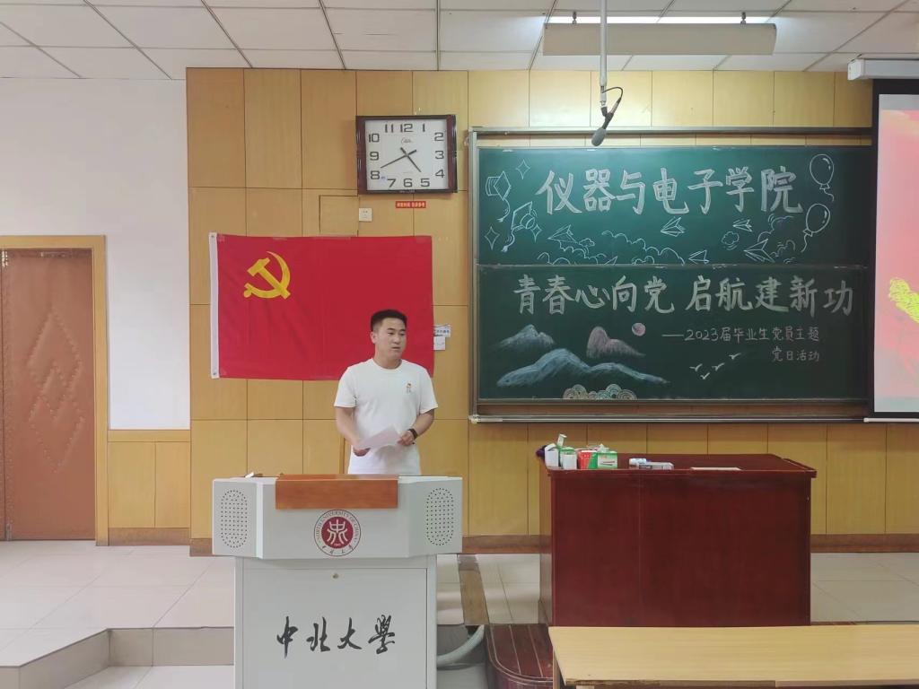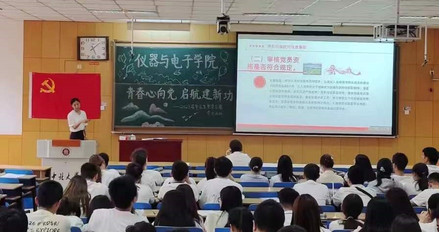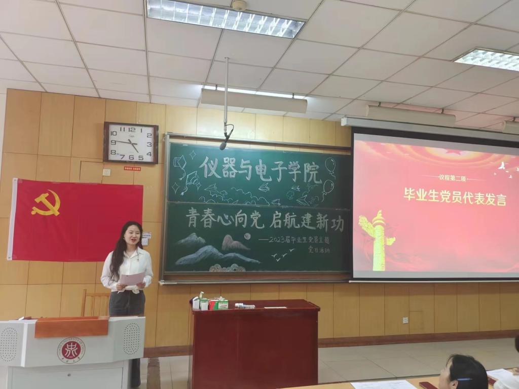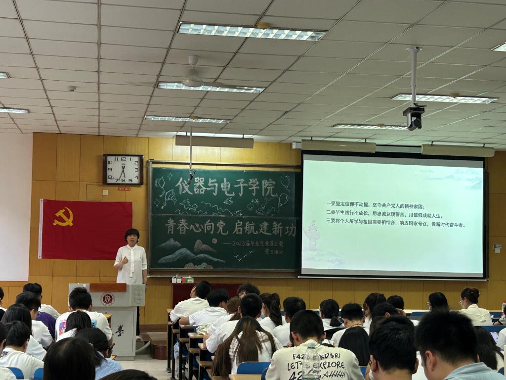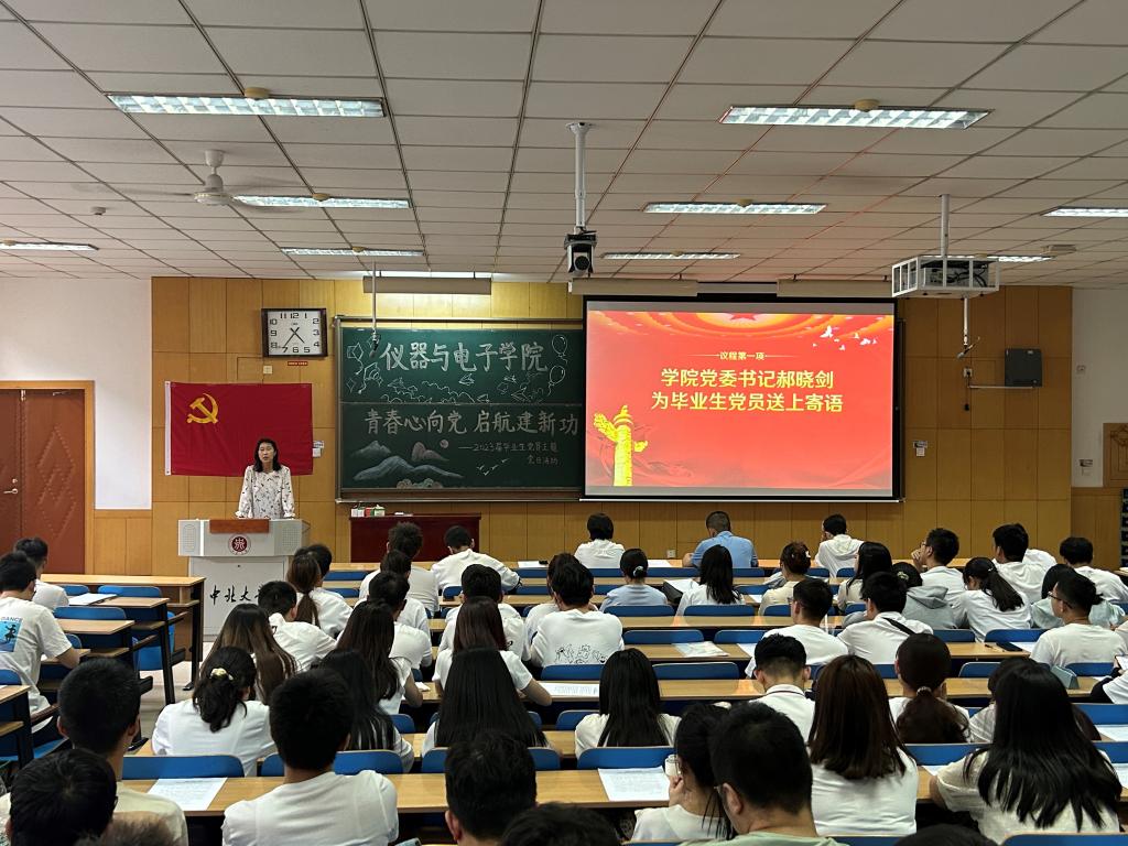 为深入开展学习贯彻习近平新时代中国特色社会主义思想主题教育,鼓励和引导毕业生党员坚定入党初心、奋楫笃行续新篇,不断增强使命感和社会责任感,仪器与电子学院于6月9日下午,在11208H教室举办了“青春心向党 启航建新功”——2023届毕业生党员主题党日活动。学院党委书记郝晓剑、学院党委副书记杜瑞平、各学生支部书记出席,全体毕业生党员参加活动。