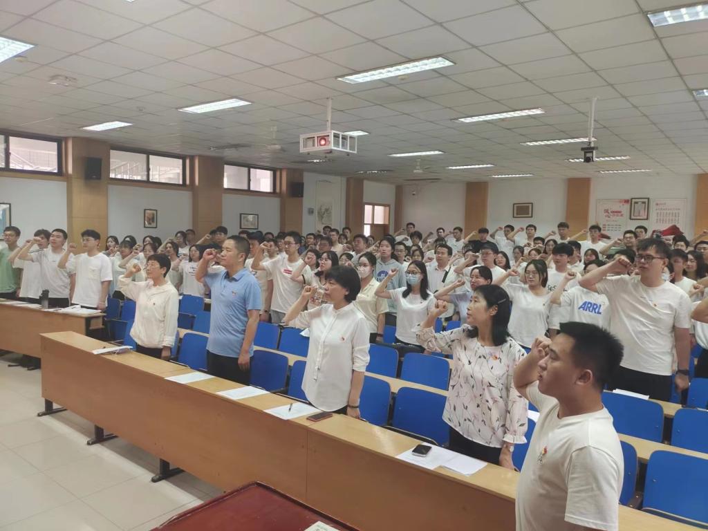 活动第四项,全体毕业生党员共同重温入党誓词。铮铮誓言增强了大家对党忠诚的意志和信念,坚定了作为新时代奋斗者的行动自觉。