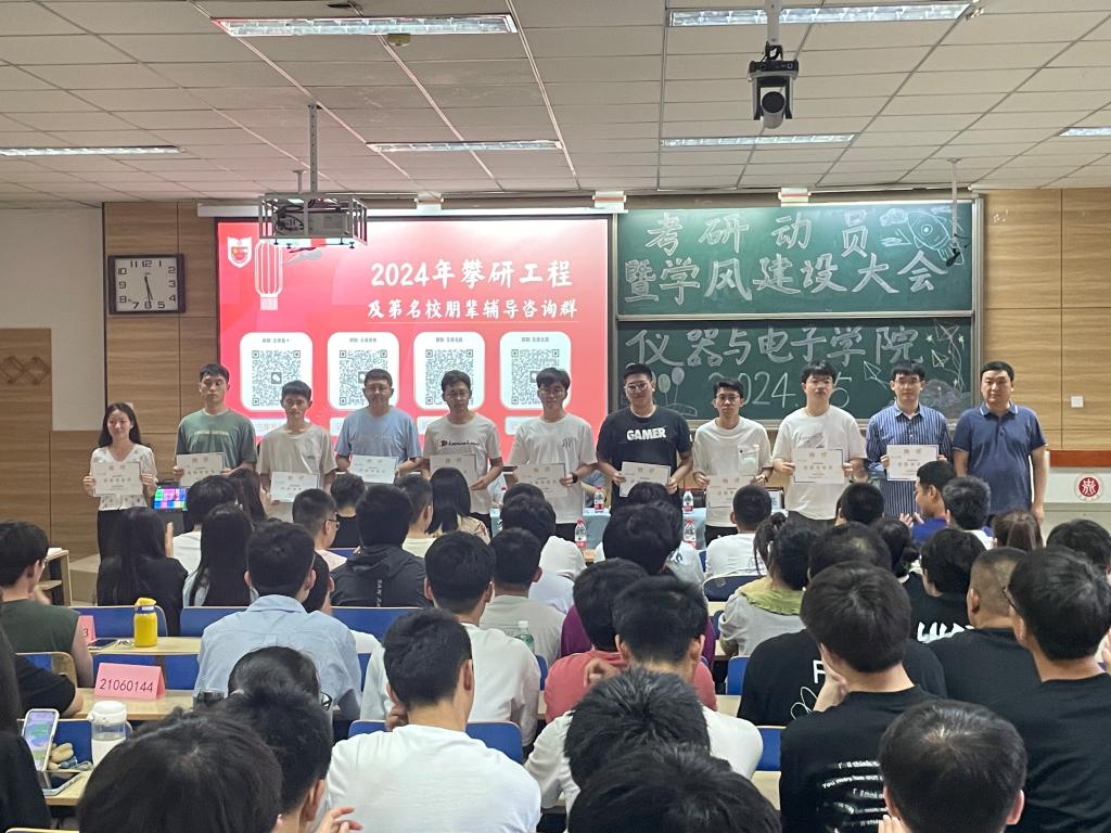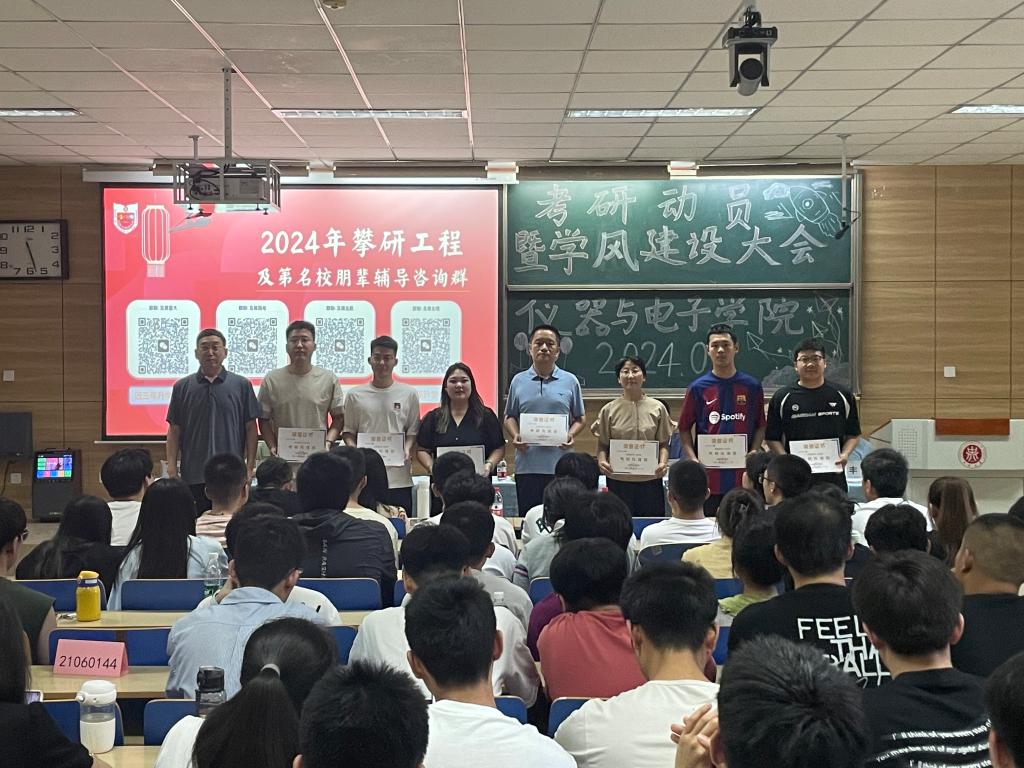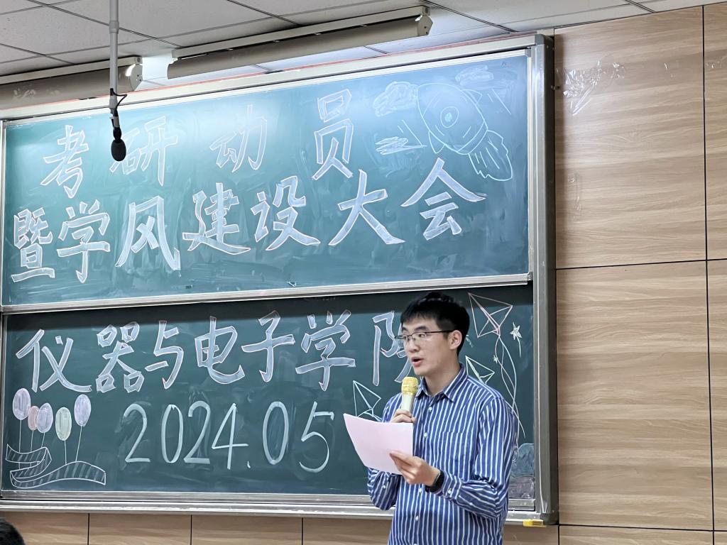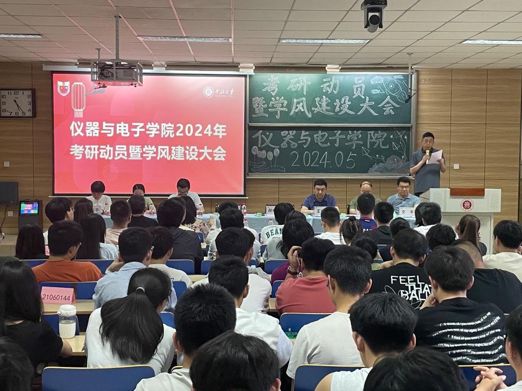 为进一步加强学院学风建设,仪器与电子学院以本科生的考研升学为抓手,全面调动学生考研积极性、明确考研目标、增强考研信心、提升考研竞争力,为学院的学风建设注入新的活力。5月21日下午,学院在09202H教室举办了主题为“领航梦想,我们一直在路上”的考研动员暨学风建设大会。学院领导班子、辅导员和班主任、学科团队的导师代表以及2021级、2022级的学生们参加了本次大会。会议还通过网络直播的形式吸引了广大学生和家长参与。
