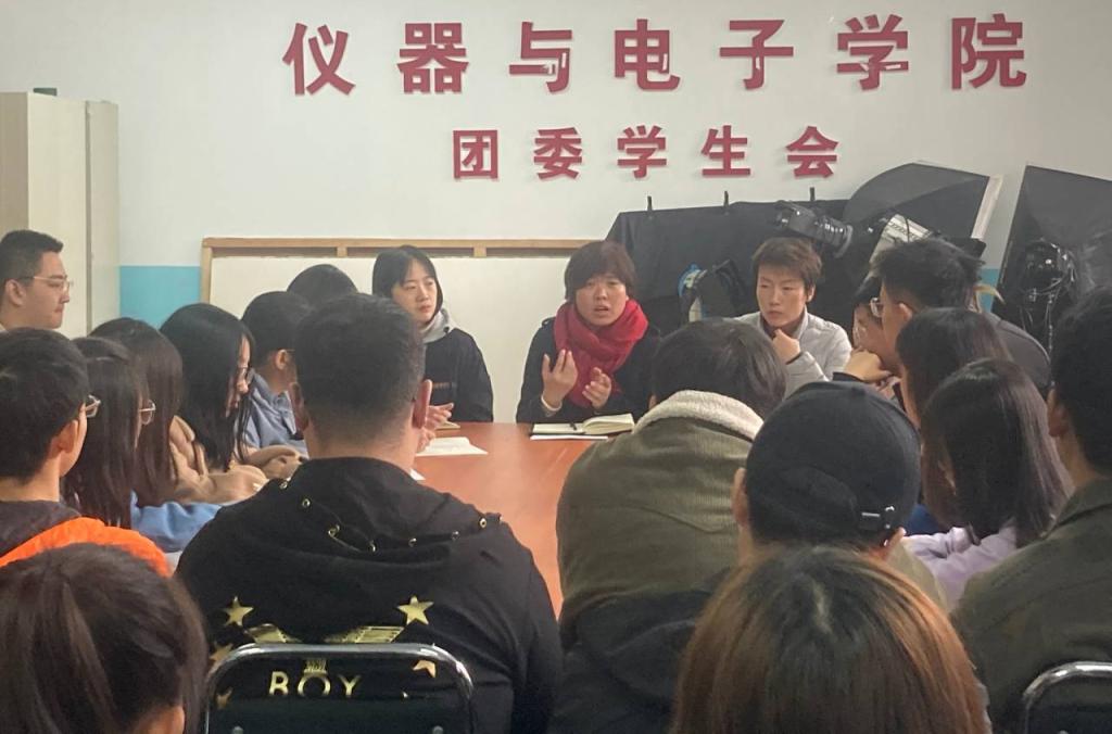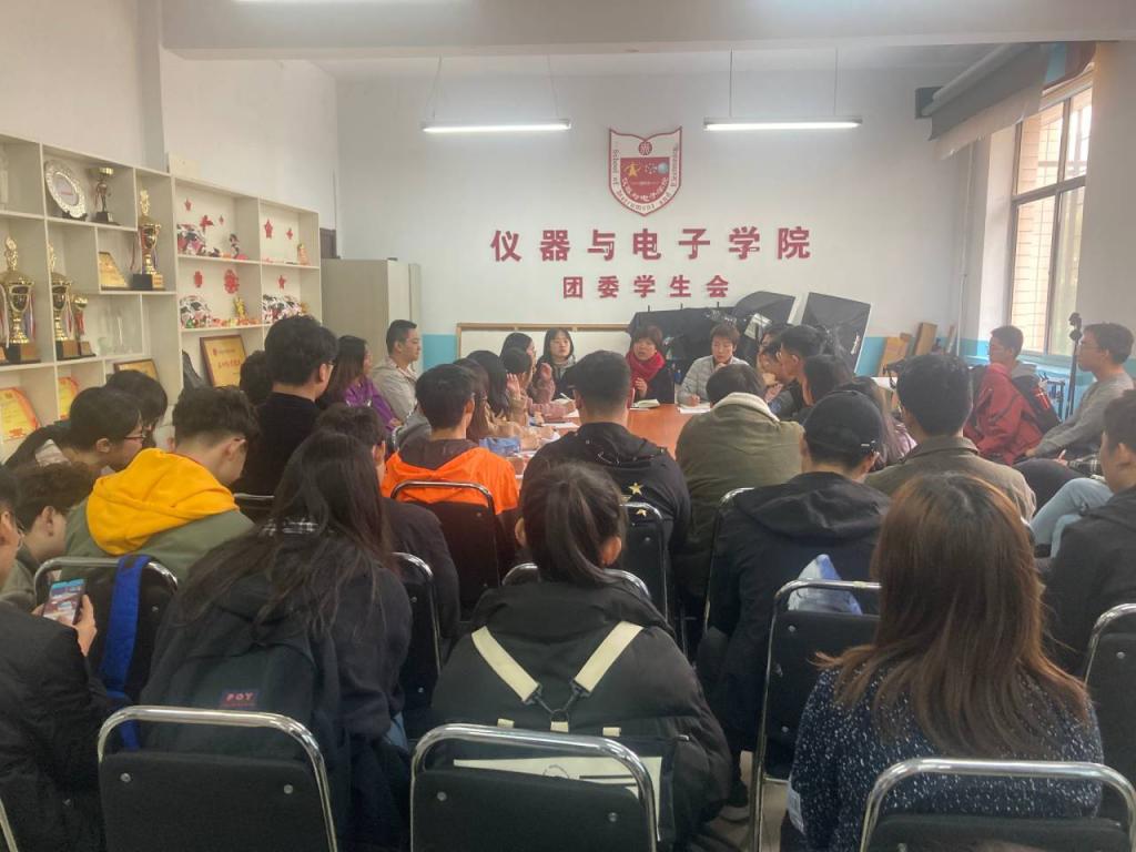 2020年10月28日中午12点,仪器与电子学院在瑞学楼学生活动中心321会议室召开学生思想政治教育座谈会。学院各年级学生代表参加了本次座谈会。学院党委副书记杜瑞平,团委书记荆伟伟、辅导员姚瑶以及学院第二届第二任学生干部,18、19、20级各团支部团支书参加了本次会议。