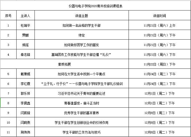 一、培训对象:仪器与电子学院19、20级班长、团支书、组织委员、宣传委员,团委、学生会副部、干事(每部6人,至少包括2名副部)。
