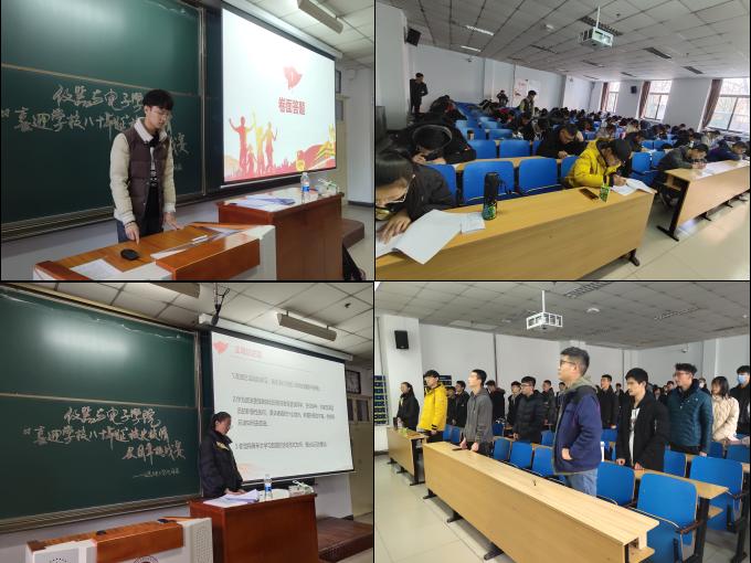 12月5日上午,仪器与电子学院在11105H教室举办了“喜迎中北八十华诞”校史校情暨团章挑战赛。大一年级各团支部书记,副书记,组织委员,宣传委员以及部分支部团员,共60人参加了本次挑战赛。