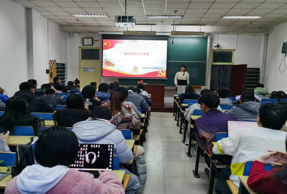 回望历史,是为了更好的前行。2021年11月24日下午,仪器与电子学院研五支部在主楼11110H教室组织开展了“我熟知的党史故事”分享会活动,讲述党的百年光辉历史,热情讴歌先烈英模和先进模范人物的光辉事迹,进一步激励广大党员干部坚定理想信念,传承红色基因,积极担当作为。仪器与电子学院研五支部全体积极分子、发展对象、预备党员、正式党员参加了此次学习活动。