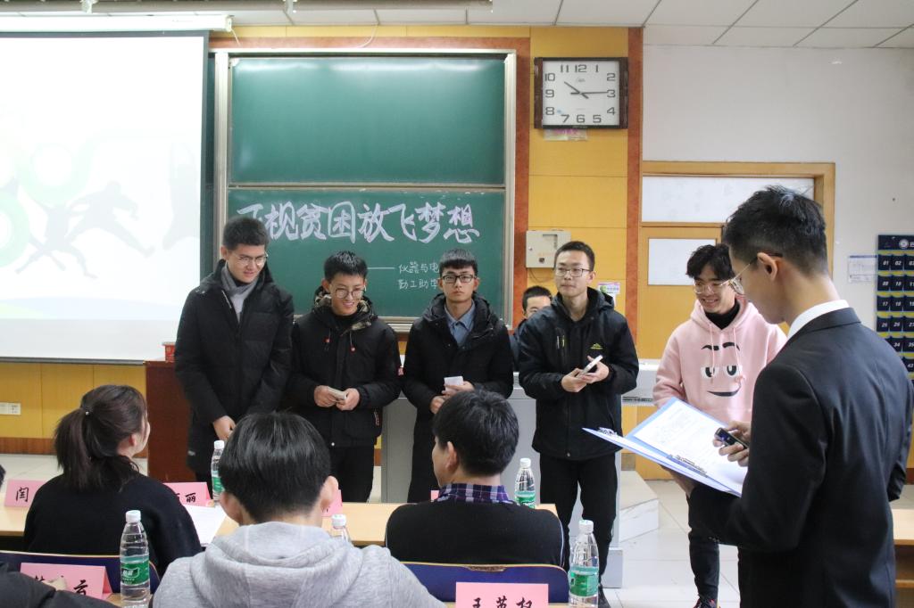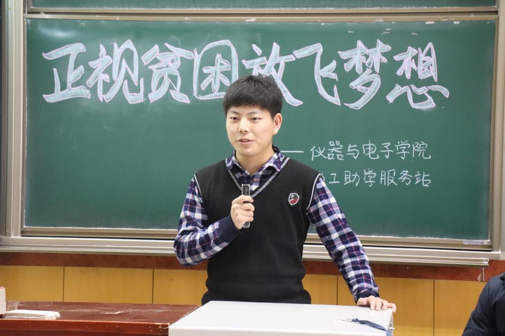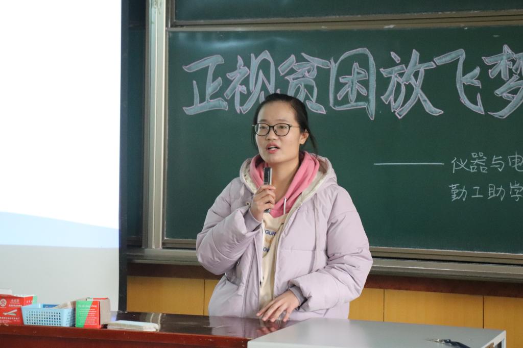 2019年12月8日上午,仪器与电子学院2019年度家庭经济困难学生励志思想交流大会于09203H教室顺利举行。学生科老师、家庭经济困难学生以及各学院助困学生干部参加了本次会议。会议给大一新认定的贫困生进行“正视贫困,放飞梦想”的团体辅导,鼓励同学“敢于正视贫困,变压力为动力,做生活中的强人”