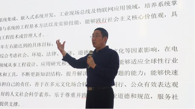接下来,刘院长向大家重点介绍了我们的电子科学与技术学科。首先,他向同学们简单讲解了本学科的培养目标、专业课程设置以及学时(学分)分配等基本问题,给大家介绍了本学科所需要掌握的知识能力。之后,刘院长又从多个方面介绍了电子科学与技术学科的优越性,并且对21级新同学提出殷切的期望,希望同学们能够充分利用学院提供的资源,在一次次的摸索中磨练自我,提升自身实力,在成就自我的同时,也为我们电子科学与技术学科的发展做出贡献,为我们新一轮的工程教育认证贡献自己的一份力量!