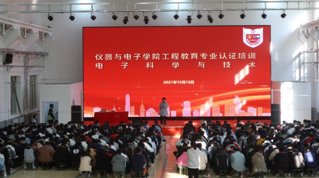 10月16日下午16点,仪器与电子学院2021级新生专业教育在东区训练馆召开。此次新生专业教育由我院党委副书记杜瑞平老师主持、院长刘文怡老师主讲。