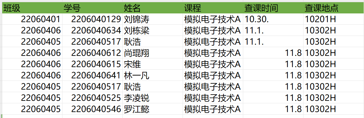 注:对于以上缺课的同学将严格按照我院《仪器与电子学院学风建设部查课管理办法》处理: